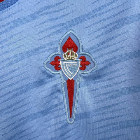- Escudo do RC Celta de Vigo bordado no peito, reforçando a identidade do clube.