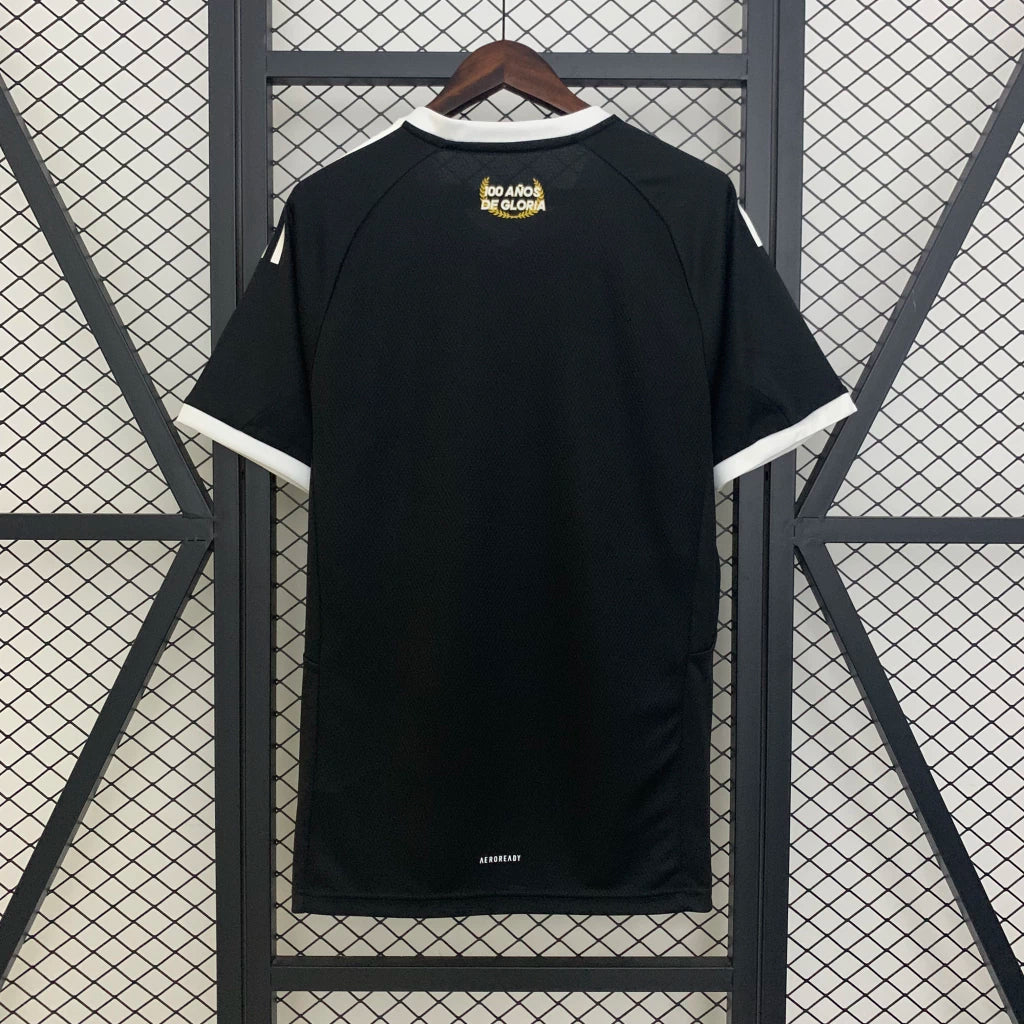 A Camisa Edição Centenário celebra os 100 anos de conquistas do Colo-Colo, um clube que se tornou referência no futebol chileno e sul-americano. Cada detalhe da camisa representa a tradição e a garra do time, fazendo dela não apenas um uniforme, mas também uma peça de história para torcedores e colecionadores. O preto clássico simboliza a força e a elegância do clube, tornando esta camisa perfeita tanto para o dia a dia quanto para exibir nos jogos.