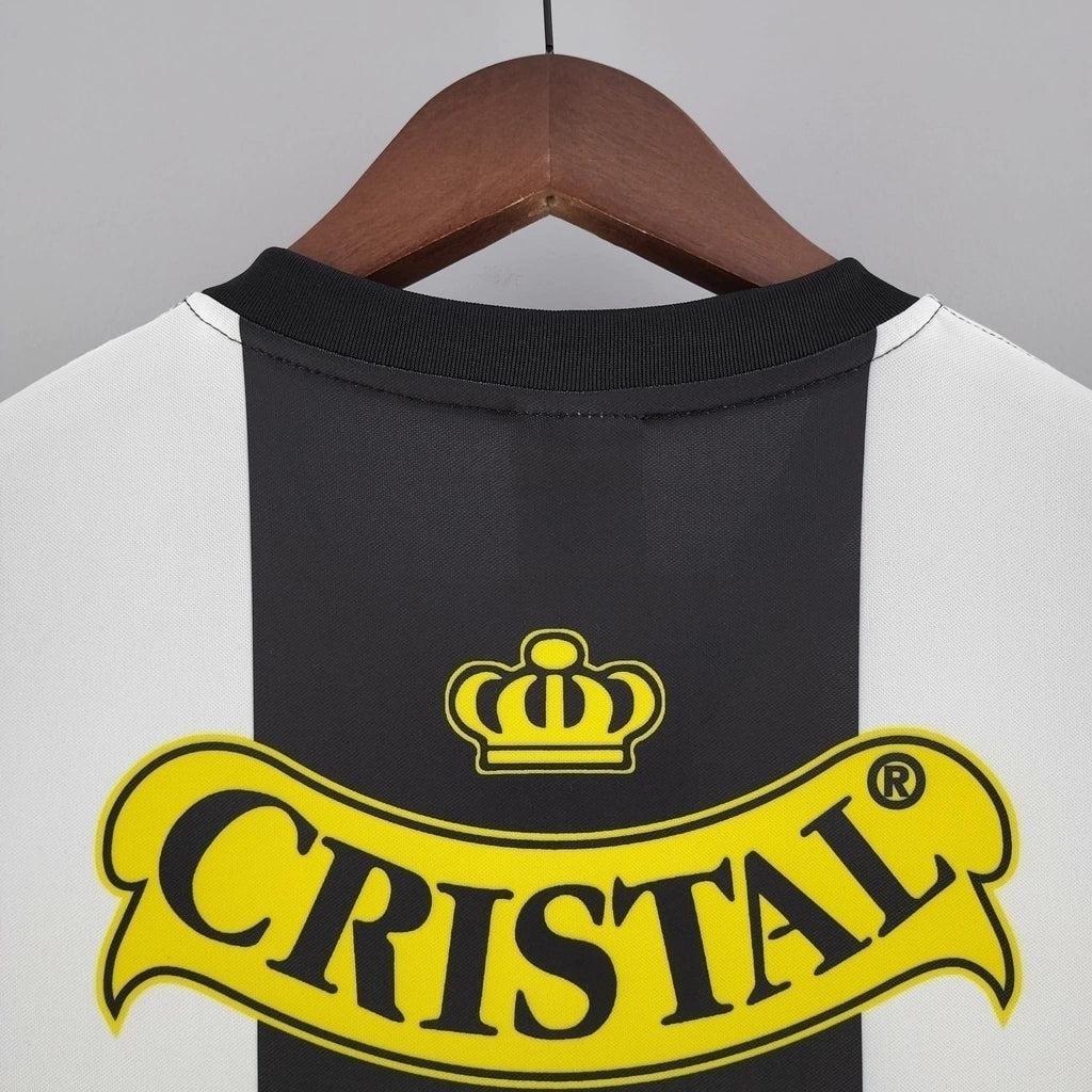 Com sua combinação clássica em branco e preto, este manto retrô remete à identidade imponente do clube e é perfeito para torcedores apaixonados, colecionadores e amantes do futebol raiz.
