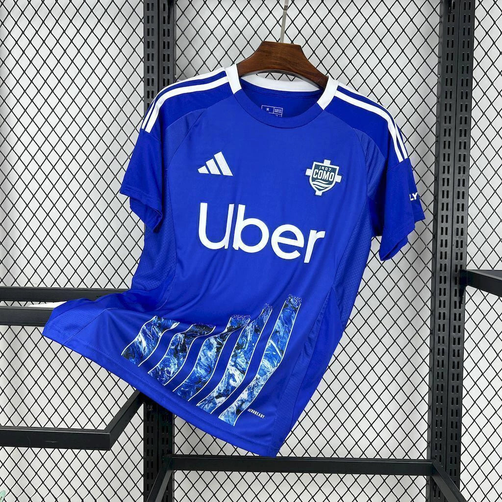 💡 Curiosidade: O Como 1907, fundado em 1907, representa a força e o renascimento do futebol italiano moderno. O uniforme Home 2024/25 traz de volta o azul marcante que reflete as paisagens do lago e a alma da cidade, com detalhes refinados que expressam a identidade e o orgulho dos torcedores “Lariani”.