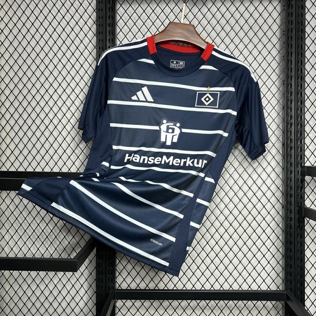 💡 Curiosidade: Fundado em 1887, o Hamburgo é um dos clubes mais antigos da Alemanha e ficou conhecido pelo seu histórico de resistência, tradição e pela torcida apaixonada. A camisa 2024/25 traz o azul intenso como cor principal, em homenagem à herança marítima da cidade e às origens do clube.