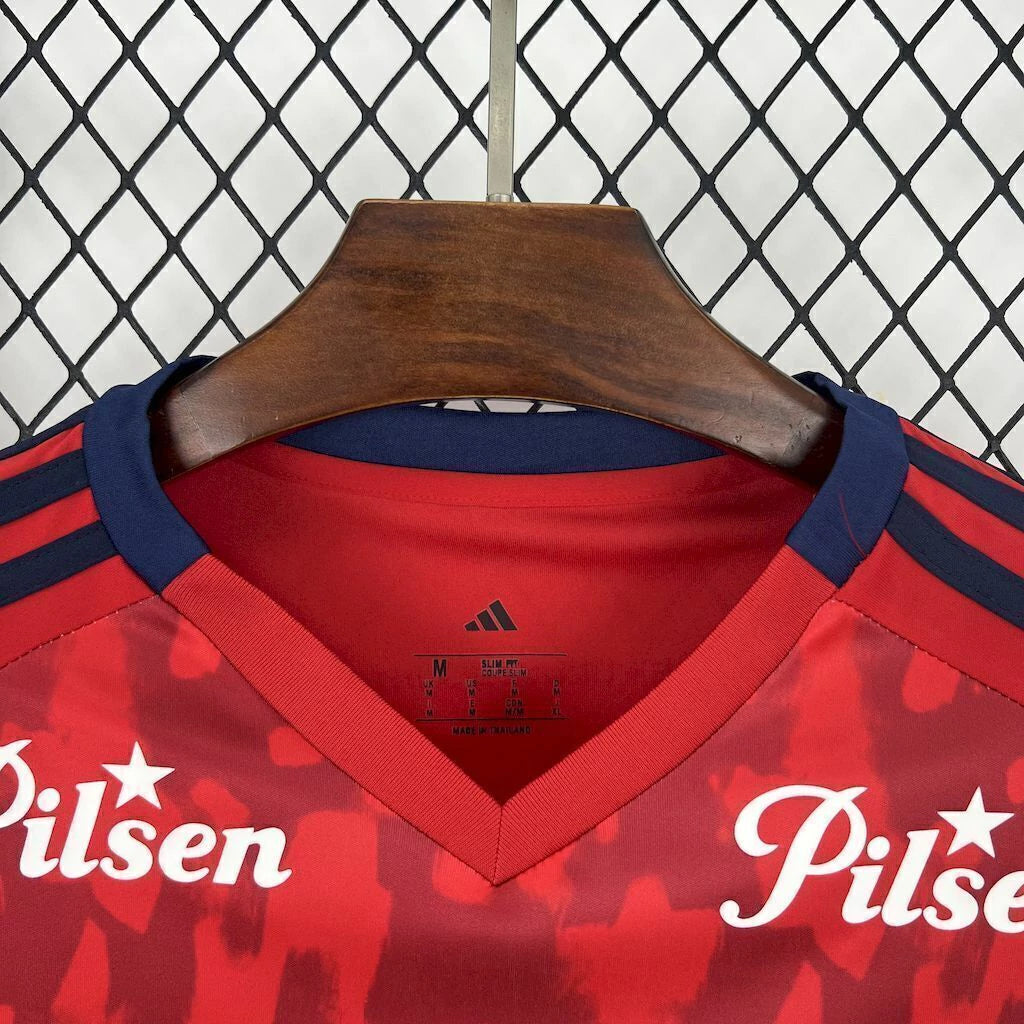A Home I 2024/25 mantém o vermelho vibrante como cor predominante, destacando os detalhes do escudo e da tradição do clube colombiano. Ideal para jogos, treinos ou uso casual, combinando história, modernidade e personalidade.