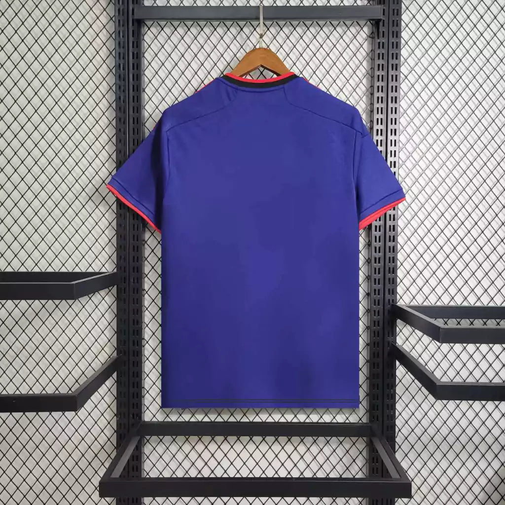 Produzida pela Adidas, o uniforme conta com tecnologia AEROREADY, que mantém o corpo seco, confortável e ventilado durante jogos, treinos ou no dia a dia. O azul vibrante, aliado aos detalhes que remetem às ondas japonesas, cria um visual marcante que se destaca nas arquibancadas e coleções de camisas internacionais.
