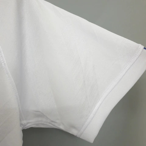 Com seu tom branco predominante e detalhes em azul e vermelho, esta camisa combina elegância e personalidade, sendo perfeita tanto para torcedores quanto para colecionadores que apreciam a história do clube.