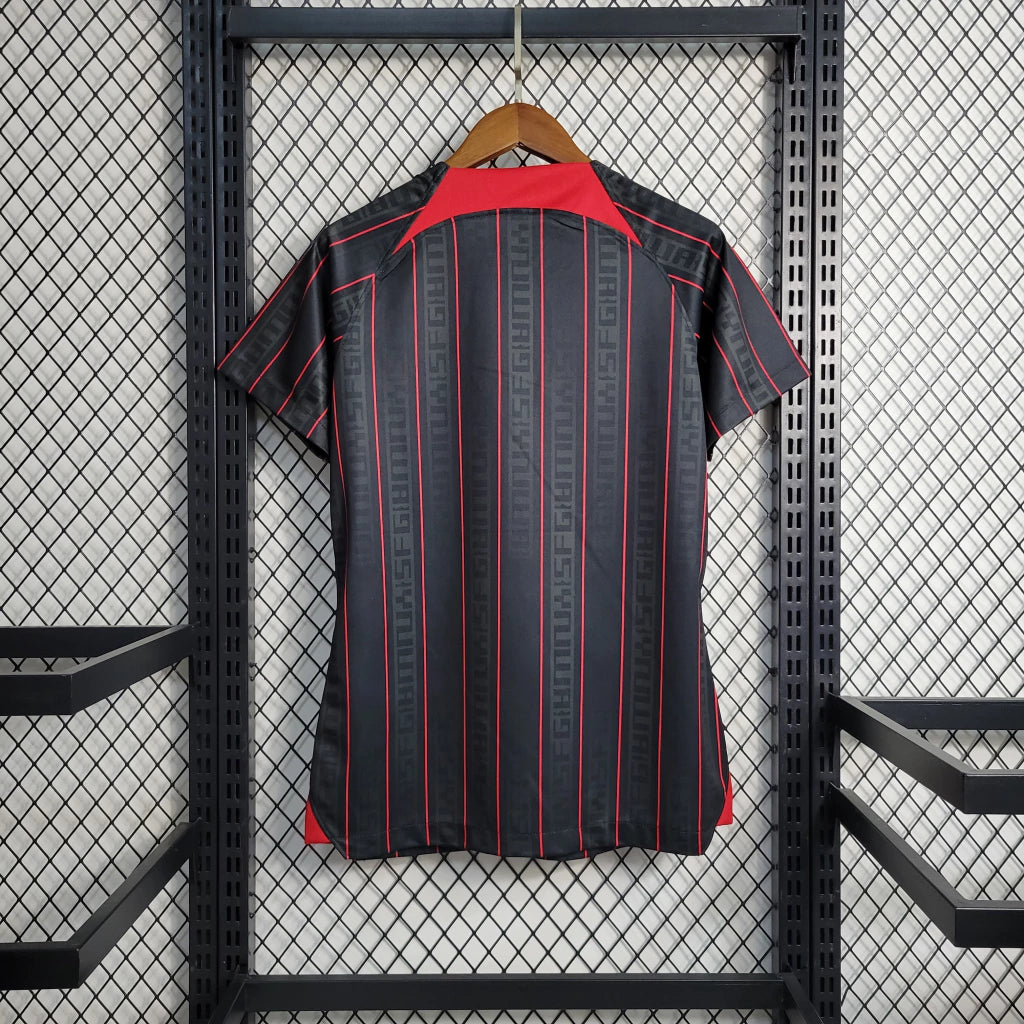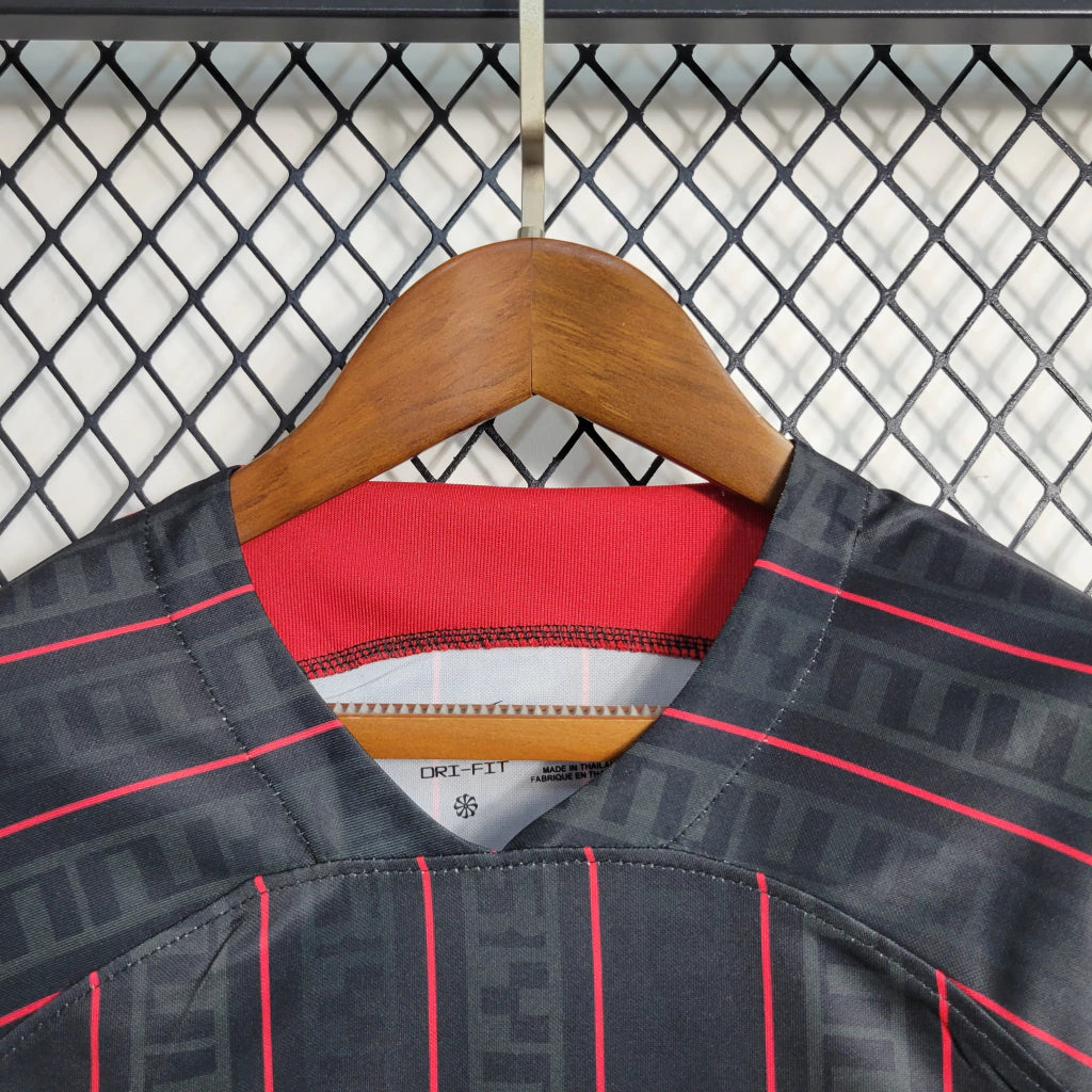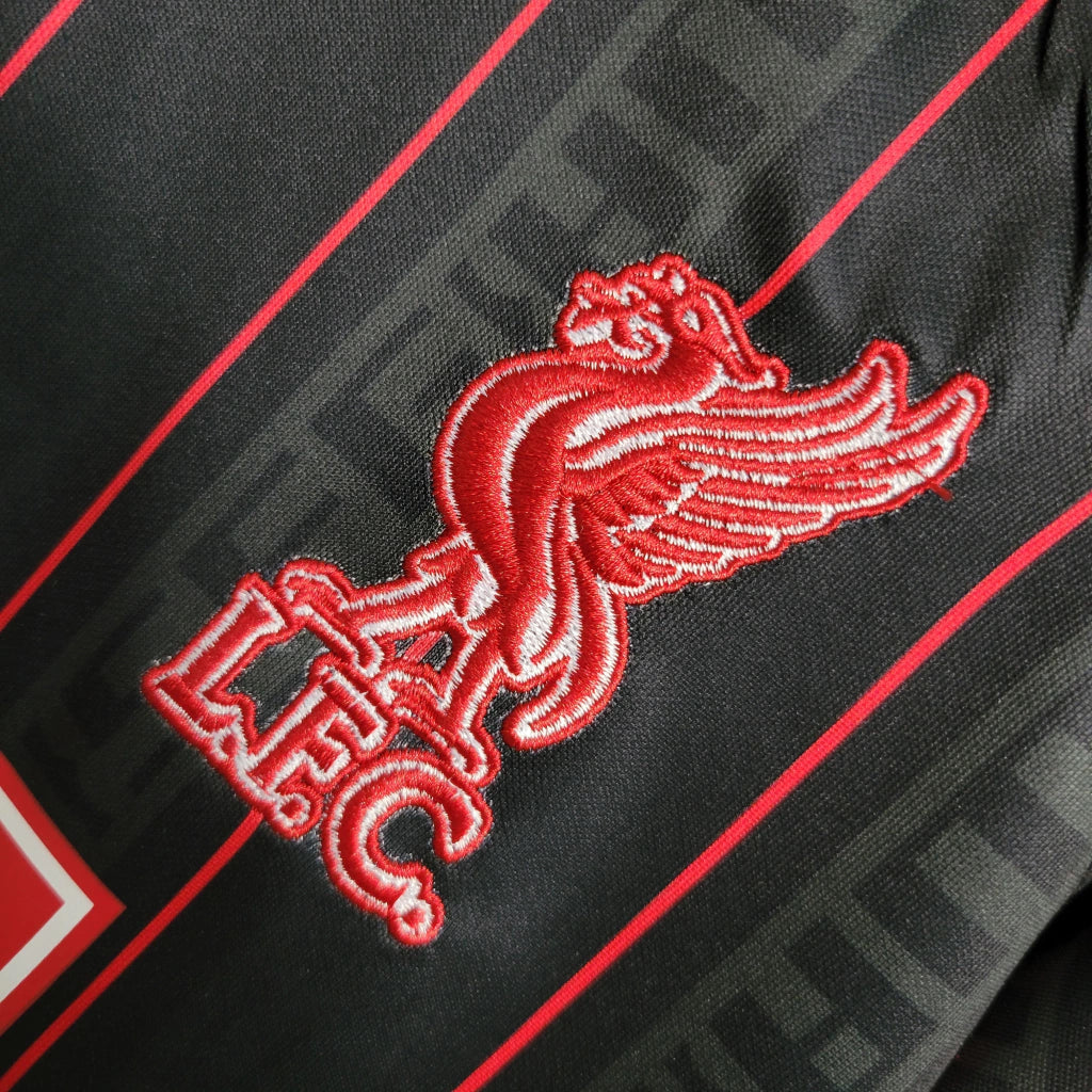 Esta camisa faz parte da colaboração entre o Liverpool e LeBron James na temporada 2023/24, unindo futebol e basquete em um design inovador. Com cor preta dominante e detalhes vibrantes, representa modernidade, ousadia e paixão esportiva.