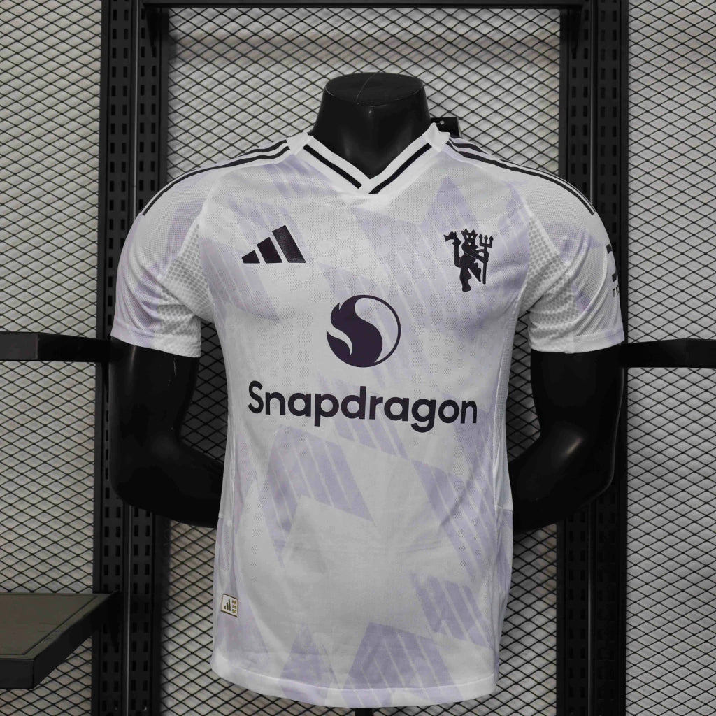 🔴⚪ Camisa Manchester United Away II 2025/26 Adidas Jogador Masculina – Branca e Lilás