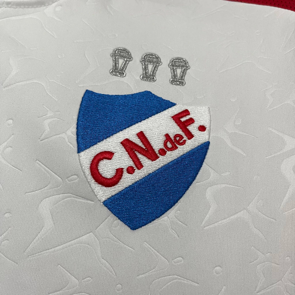✅ Design clássico e elegante – branco predominante com detalhes vermelhos que valorizam o escudo e a história do Nacional.