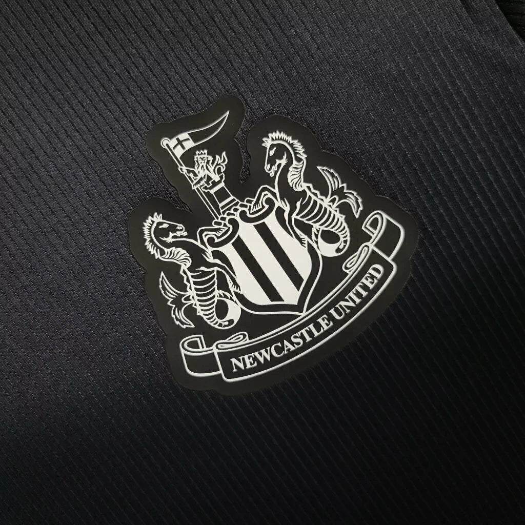 A Camisa Newcastle Pré-Jogo 2023/24 Torcedor Masculina - Preta representa o foco e a intensidade antes das grandes batalhas.