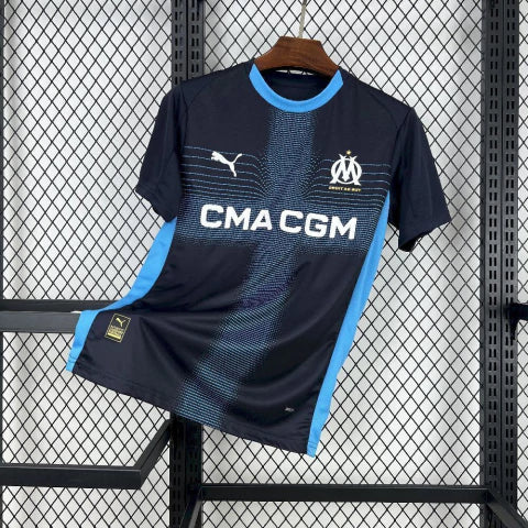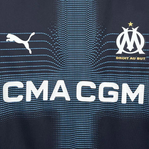 Com seu tom azul profundo e detalhes sutis inspirados na arquitetura e nas ondas do Mediterrâneo, esse manto representa a elegância e a identidade vibrante do Olympique de Marseille.