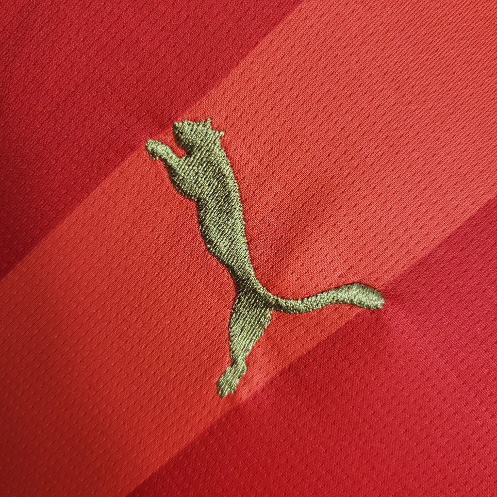 A Puma manteve o estilo tradicional, com as listras verticais marcantes e detalhes modernos que tornam a camisa ideal tanto para colecionadores quanto para quem quer vestir o escudo com orgulho no dia a dia.