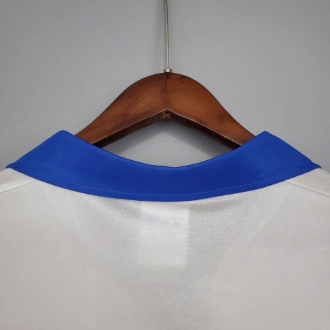 Com seu design branco clássico e detalhes em azul e vermelho, essa peça traz toda a nostalgia da era Umbro, sendo perfeita para colecionadores e torcedores que valorizam o estilo retrô e a tradição do Rangers FC.
