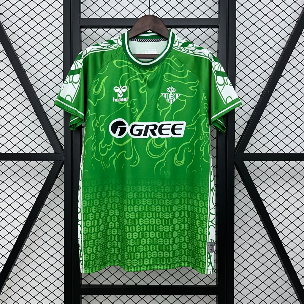 - Escudo do Real Betis bordado no peito, com toque dourado especial.