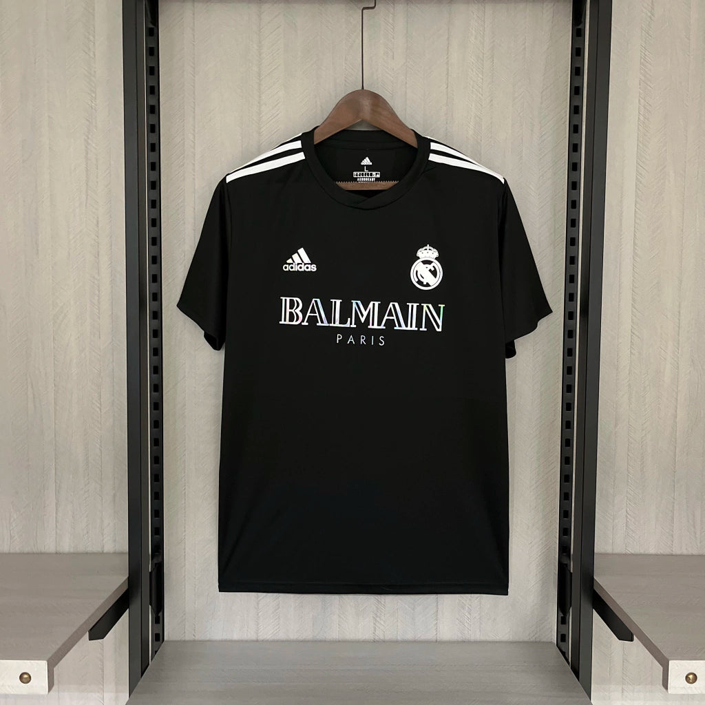 👑 Camisa Real Madrid Balmain 2023/24 Adidas Torcedor Masculina – Preta | Edição Especial de Luxo