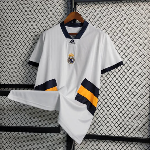 - Escudo do Real Madrid bordado no peito, reforçando identidade e estilo para torcedores.