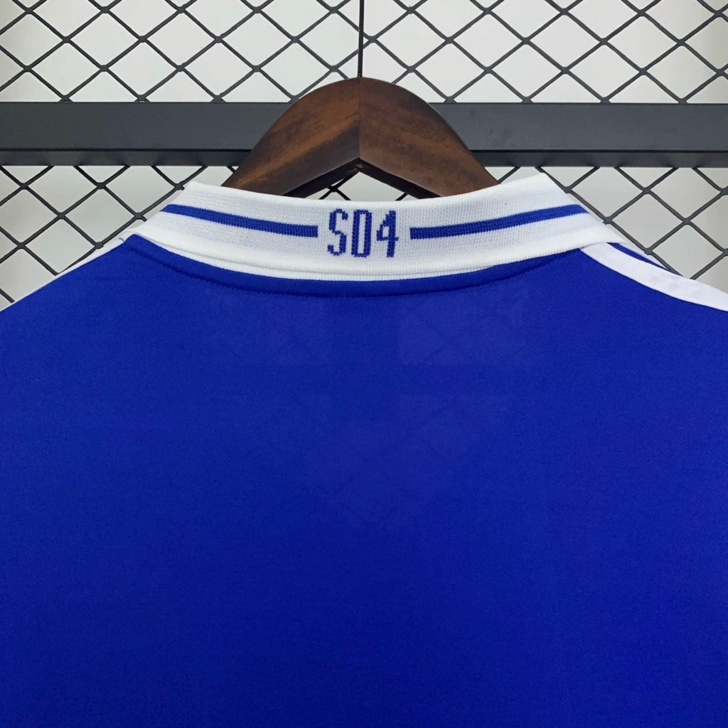 Reviva a época dourada dos Reis Azuis com a lendária Camisa Home I 2000/01 do Schalke 04, um dos uniformes mais marcantes da história recente do clube. Essa versão retrô traz o azul tradicional como protagonista, acompanhado dos detalhes brancos que simbolizam lealdade, tradição e garra — marcas registradas do Schalke.