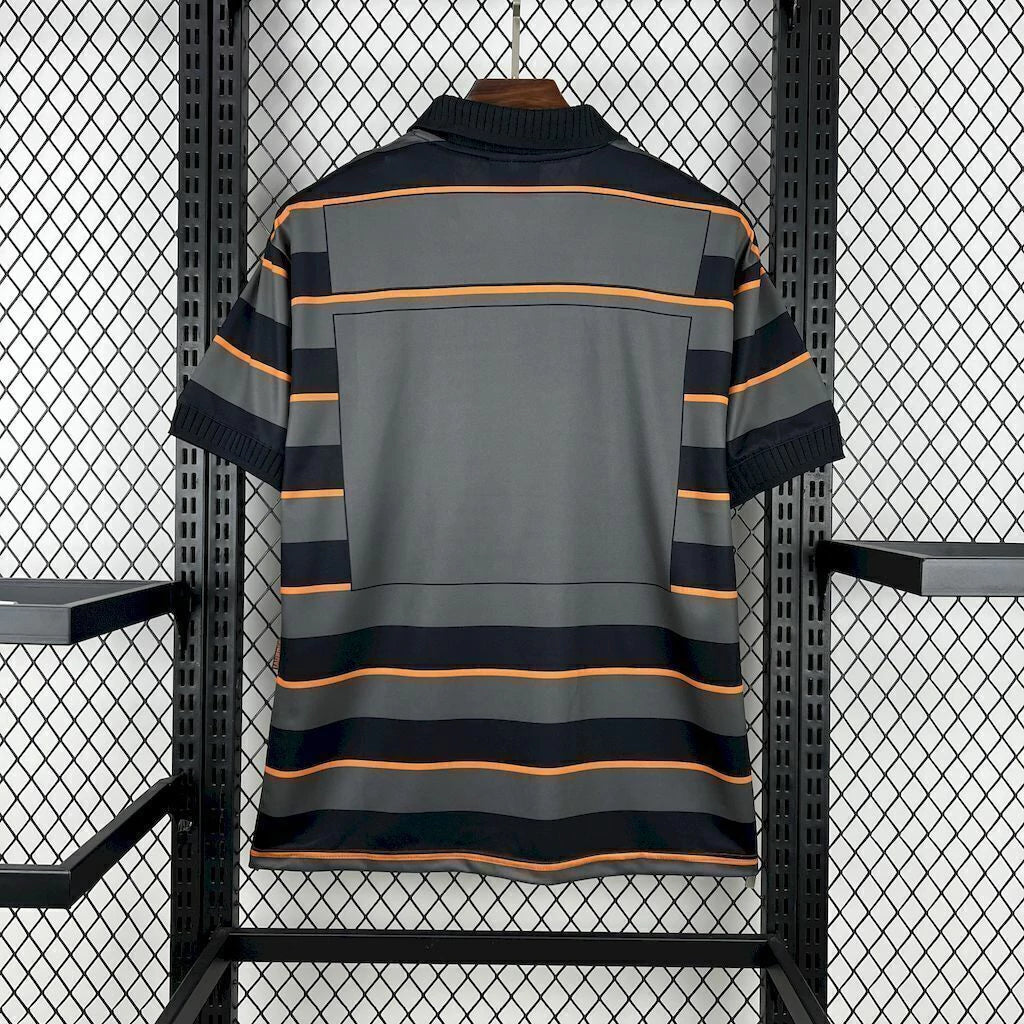 A Camisa Valencia 1999/00 Retrô Masculina – Preta celebra uma das temporadas mais marcantes da história recente do clube espanhol, quando o Valencia CF encantou a Europa com seu futebol competitivo e chegou à final da UEFA Champions League. Com um design fiel ao modelo original usado naquele ano, esta peça retrô é um verdadeiro símbolo de orgulho e nostalgia para os torcedores.