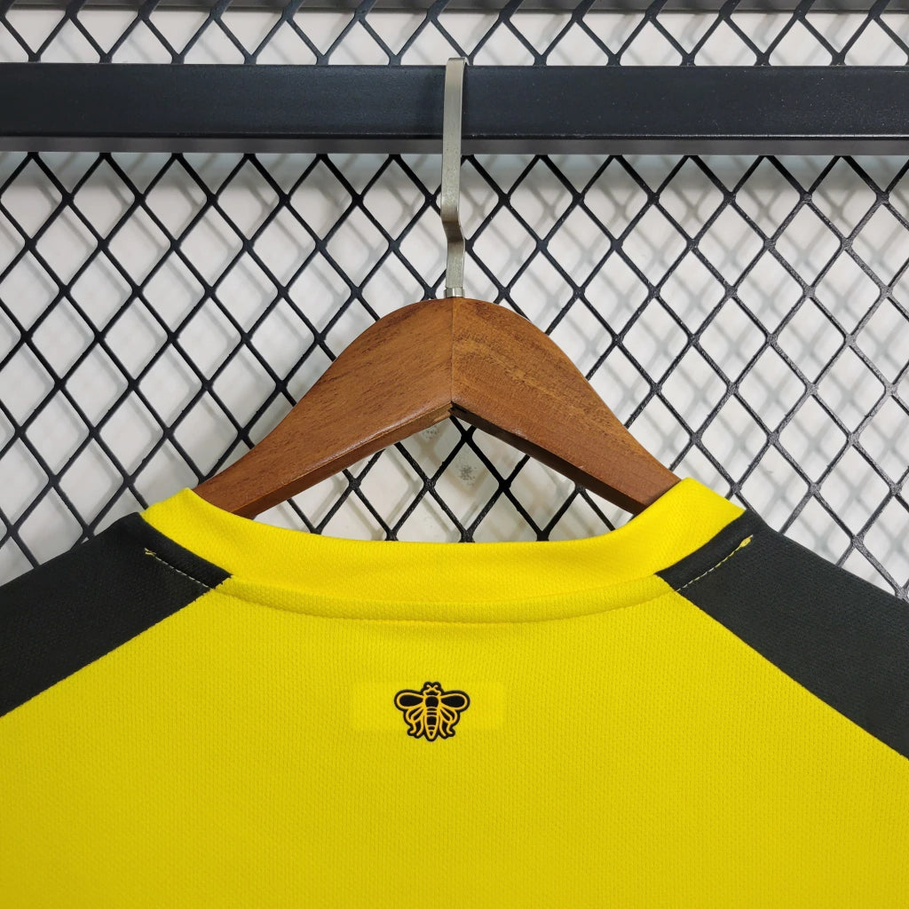 A Camisa Home I 2023/24 Torcedor Masculina – Amarela traz o clássico design do clube, com o amarelo vibrante predominante e detalhes em preto que representam a identidade marcante dos Hornets.