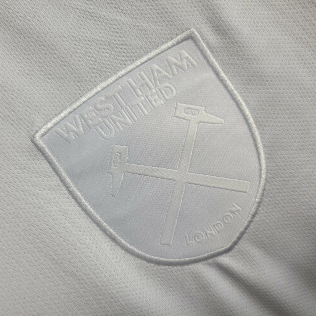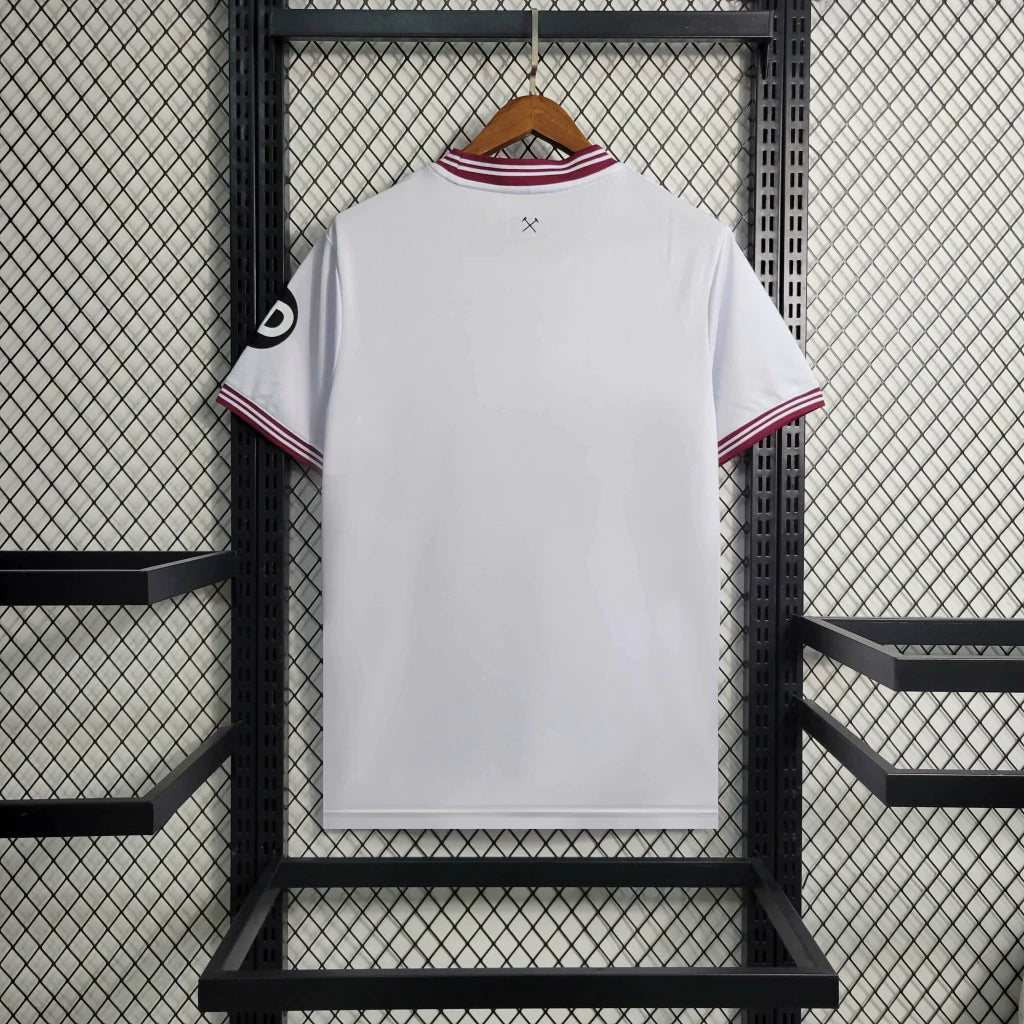 A Camisa West Ham Away II 2023/24 Umbro Torcedor Masculina – Branca é um símbolo da elegância inglesa dentro do futebol, combinando design limpo e moderno com a força da história dos Hammers.